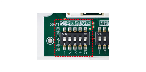 感知器を接続しない予備回線は、ディップスイッチで簡単に空き回線処理が可能。終端抵抗器の接続は不要です。