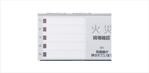 受信機への火災信号入力が、発信機からのものか感知器からのものか、ひと目で区別できるように、より見やすい位置(火災灯の近く)に発信機灯を配置しました。