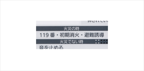 火災時の行動が落ち着いてできるよう、「119番」・「初期消火」・「避難誘導」を明記しています。