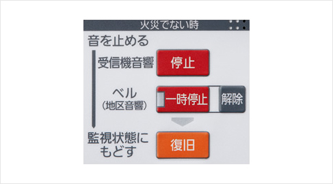 • 注)地区音響を再度鳴動させる場合は、「ベル(地区音響)一時停止解除」スイッチを押してください。