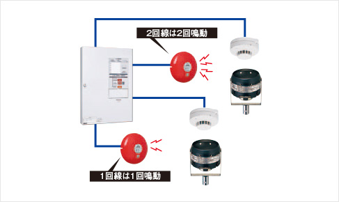 火災信号を受信すると、警報音と音声警報でわかりやすくお知らせします。