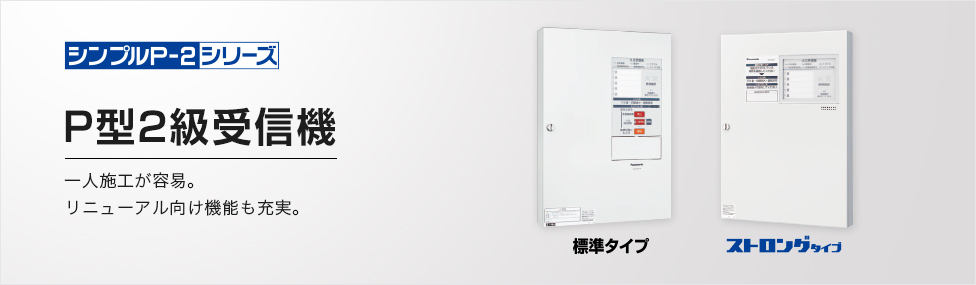 シンプルP-2 シリーズ P型2級受信機 一人施工が容易。リニューアル向け機能も充実。シンプルP-2 シリーズ P型2級受信機 一人施工が容易。リニューアル向け機能も充実。