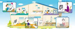 1ヵ所からまとめて配線できるので、あちこちにコードやケーブルが目立つことなく、お部屋の美観を損ねません。