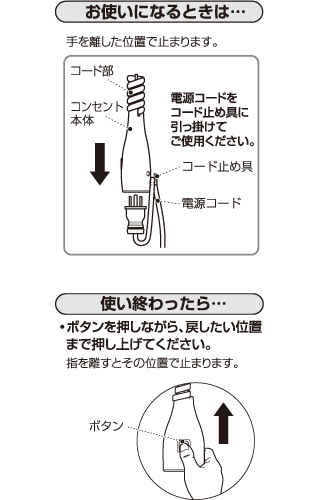 • 使い終わったらボタンを押しながら戻したい位置まで押し上げてください。