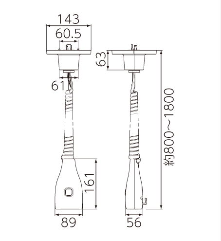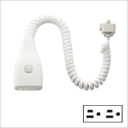 使用する時に頭上から引き下ろして機器をつないで使用し、使用しない時は邪魔にならない高さまで上げることができる便利なコンセントです。
