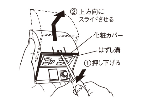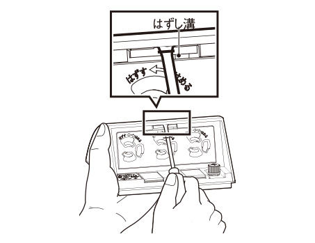 はずし溝にマイナスドライバーを差し込み、カバーを外す