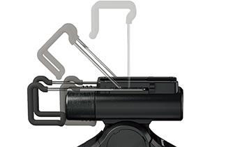 電池ケースと一体化。収納時は電池の保護、脱落防止としても機能。