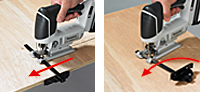 ジグソー用吸塵機アダプター(別売)を使えば、市販の集じん機に接続できます。周囲を汚さず、片づけもラク。