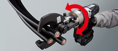 先端のアタッチメントを換えるだけで「圧着」「切断」「圧縮」「打抜き」が可能