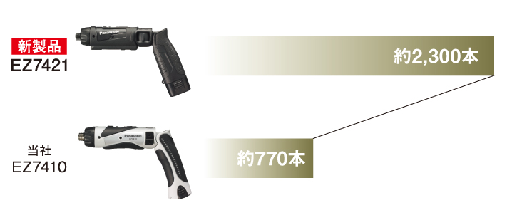 当社ES7410に比べて、充電1回あたりの作業量は大幅アップ。