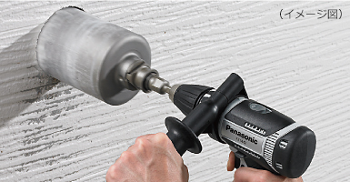 | 能力(目安・フル充電で) | 穴あけ | 《Highモード》ウッディングコアドリル(φ65×窯業系サイディング材16mm+合板12mm)約30穴 《Lowモード》ウッディングコアドリル(φ110×窯業系サイディング材16mm+合板12mm)約10穴 《Highモード》金工ドリル・SPC(φ13×1.6mm、金工φ6.5下穴あり)約220穴 《Highモード》ホールソー・SPC(φ21×1.6mm)約30穴 《Highモード》ホールソー・SPC(φ25×1.6mm)約25穴 《Highモード》ホールソー(φ50×石膏ボード16mm+合板12mm)約45穴 《Highモード》木工・米松(φ18×120mm)約90穴 |