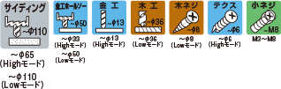 | ネジ締め | 《Highモード》木ネジ・米松(φ6×80mm)約240本 《Highモード》テクスネジ・SPC(φ4×13mm・板厚1.6mm)約560本 |