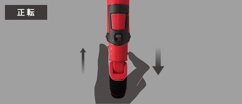 本体右側(上から見て)を手前に引けば「正転」。工具のトリガーを引くのと同じ操作感覚。