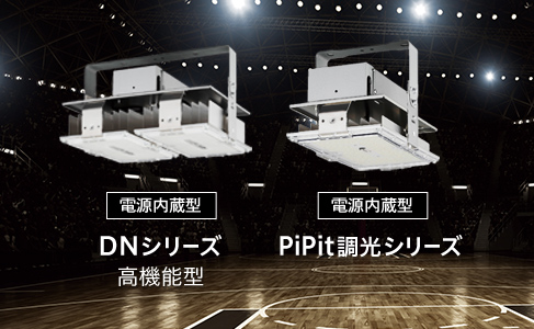 体育館・アリーナ、工場、倉庫など、天井高さ8m以上の空間に適した高天井照明器具です。体育館には無線調光、見上げることの多い施設ではまぶしさ低減など、環境や用途に応じた機能を備え、省エネ・軽量・コンパクトな器具で多様な現場に対応します。
