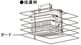 障害物などがあたると想定される場所では、ガードなどを取り付けて保護を行ってください。