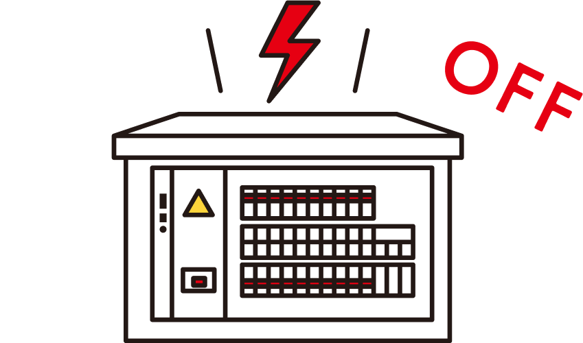 3分以内に停電しなかった場合 主幹漏電ブレーカを3分後※に強制遮断。 ※ 夜間に地震が発生した場合などに避難経路の照明電源を確保するため、3分間の通電時間を設けています。即時遮断に設定変更も可能です