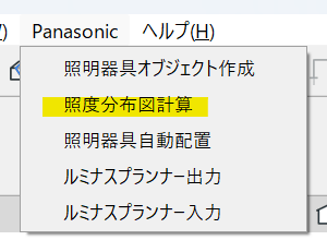 - メニューバーの「Panasonic」から「照度分布図計算」を選択します。