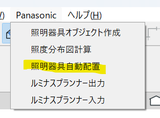 - メニューバーの「Panasonic」から「照明器具⾃動配置」を選択します。