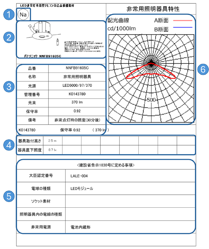 建設省告⽰1830号に定める事項 [編集可能] Panasonic⾮常照明器具ファミリのタイプパラメータを参照しています。 各項⽬の参照先パラメータは以下の通りです。