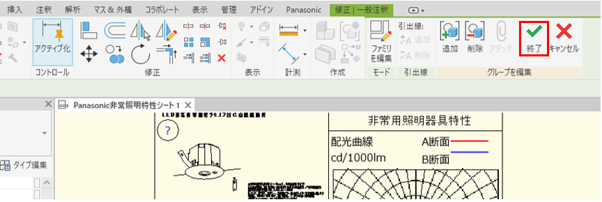 この機能は、Panasonicの⾮常照明器具ファミリを配置している場合に利⽤が可能です。