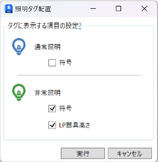 :全ての照明器具で表⽰可能。照明器具タイプの「符号」パラメータの値を表⽰ :⾮常照明器具でのみ表⽰可能。⾮常照明器具インスタンスの「LP器具⾼さ」の値を表示 |