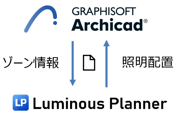 - Archicad→LP:ゾーン情報と照明器具配置情報を書出します。LPで部屋が自動認識されます。LP→Archicad:照明器具の配置情報を書出します。ArchicadではGDLオブジェクトに自動変換されます。