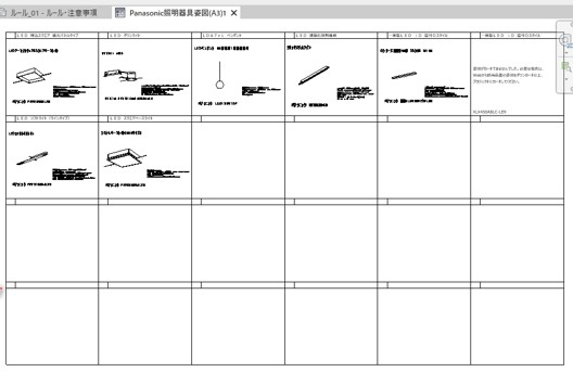 プロジェクトに配置されている当社製の照明器具の姿図一覧を凡例ビューの中に作成します。