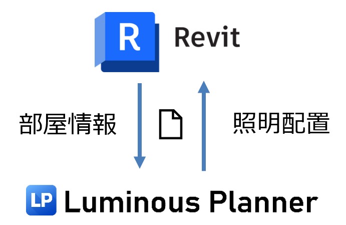 LP→Revit:照明器具の配置情報を書出します。Revitではファミリデータに自動変換されて配置されます。