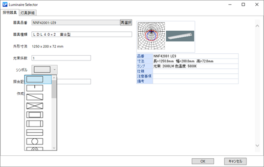 照明器具の図面上への表示形式を選択することができます。