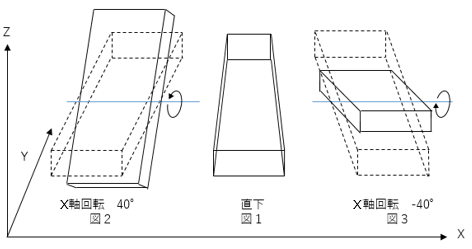図2のような方向にA断面を向ける場合、Z軸回転90°と入力してください。