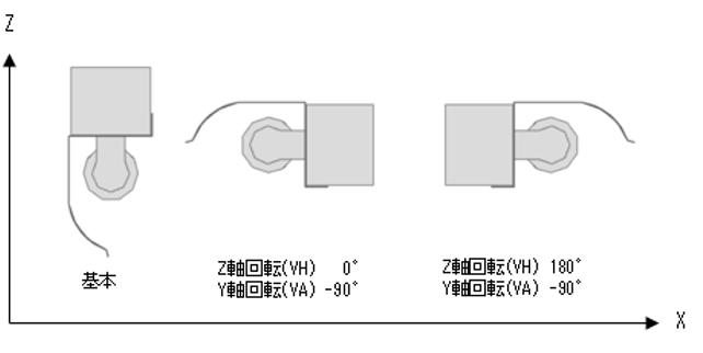 Z軸回転(VH),Y軸回転(VA),X軸回転(VB)が入力されている時の回転順番を表しています。