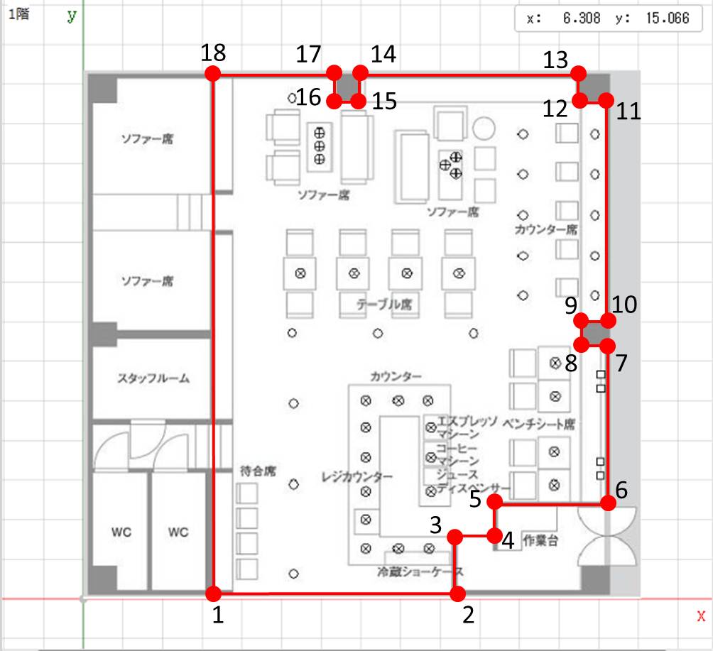 1. 部屋形状の頂点を、カーソルで選択し指定していきます。指定は、一筆書きで連続して行います。