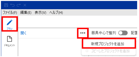 1. [プラン]モードで「開く」の「…」をクリック、「新規プロジェクトを追加」を選択します。