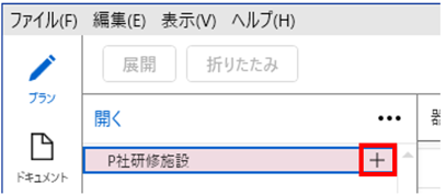 1. ツリーに「プロジェクト」(例:P社研修施設)が作成されますので、「+」をクリックします。