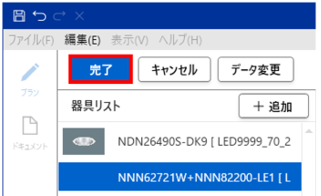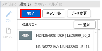 その場合は、「完了」で閉じずに「検索」をクリックして器具を追加し、図面上に配置していきます。