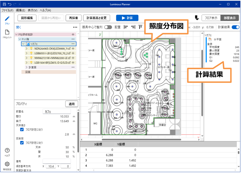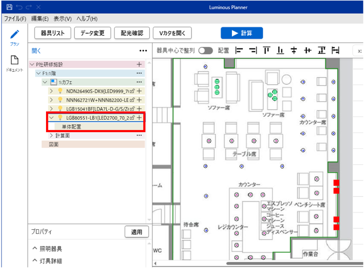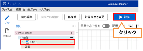 1. 次に、照度計算を行います。「計算」をクリックします。
