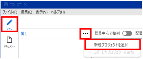 - [プラン]モードで「開く」の「…」をクリック、「新規プロジェクトを追加」を選択します。