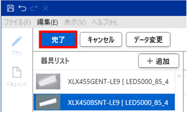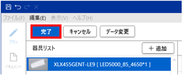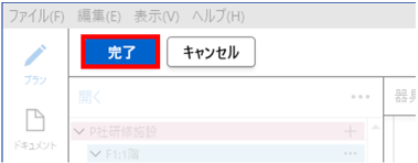 - 器具配置が確認できましたら、「完了」をクリックします。