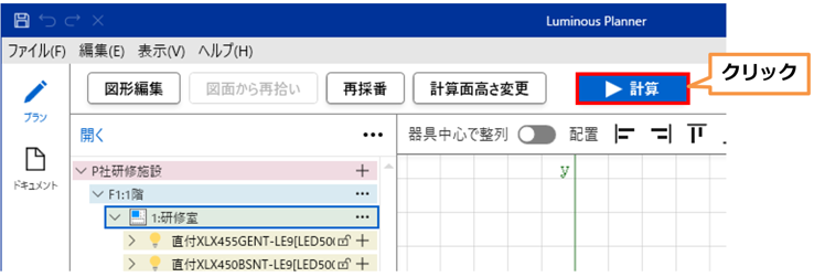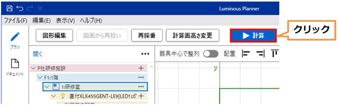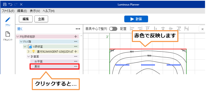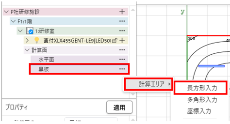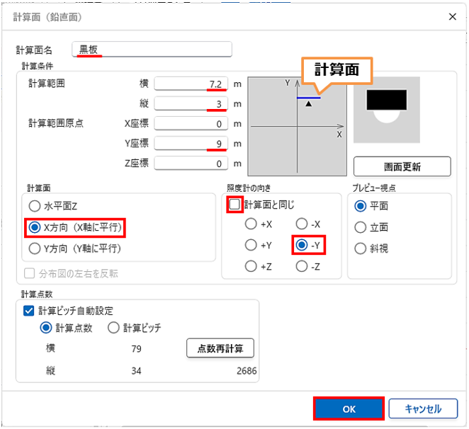 - 続けて、黒板灯を配置し、鉛直面(壁面)の計算を行います。