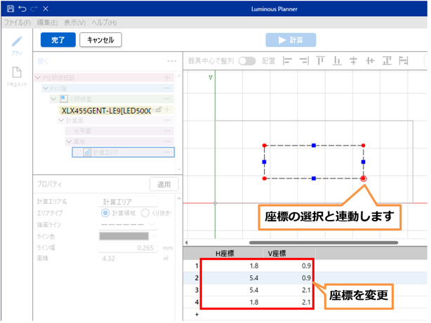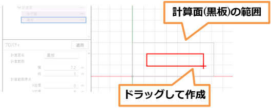 ※計算エリアは、はじめにフリーハンドで作成した後に、座標でサイズ調整を行います。