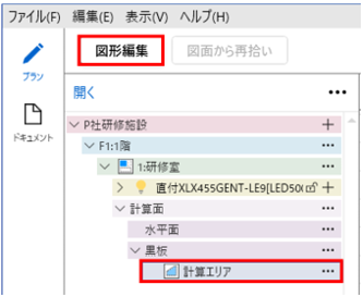 - ツリーに「計算エリア」が作成されました。「図形編集」をクリックしてサイズを調整します。