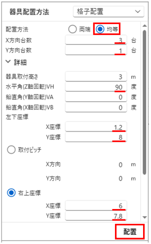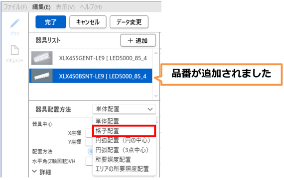 続けて、[器具配置方法]のプルダウンから「格子配置」を選択します。
