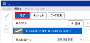 - メインビューに照明器具が配置されますので、「完了」をクリックして確定します。