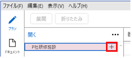 - ツリーに「プロジェクト」(例:P社研修施設)が作成されますので、「+」をクリックします。