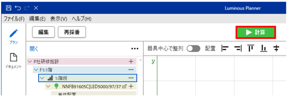 - 次に、照度計算を行います。「計算」をクリックします。
