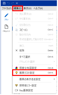 メニュー「編集」―「器具リスト設定」を選択します。