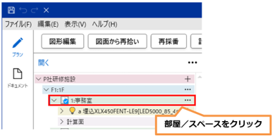 - ツリーの部屋/スペース(例:事務室)をクリックします。