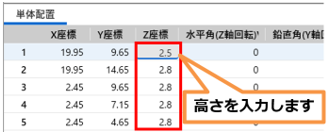 2. 器具の取り付け高さは「Z座標」になります。