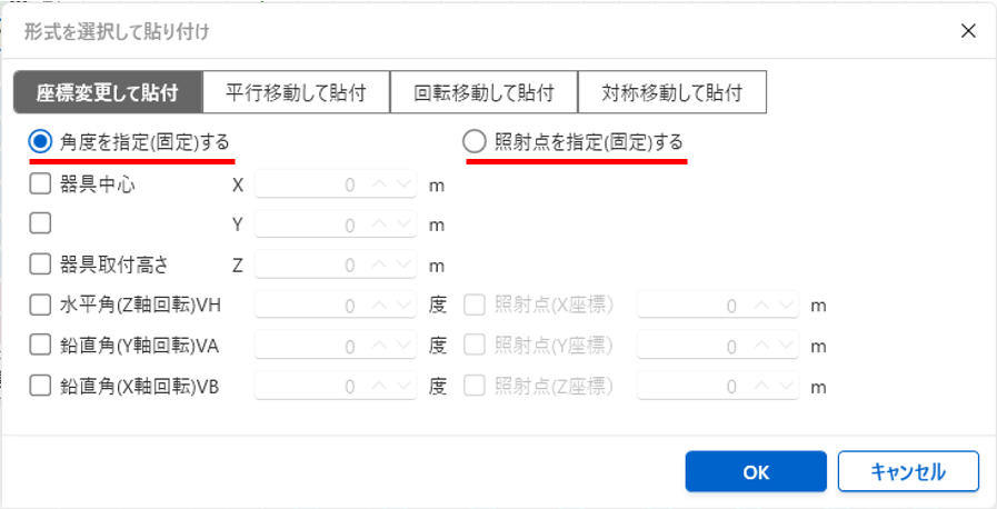 器具位置の複写(コピー/形式を選択して貼り付け)