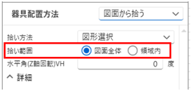 器具を拾う範囲を「図面全体」と「領域内」で選択できます。